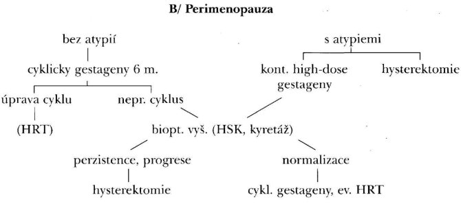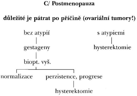 příčině, protože hyperplazie endometria je nález méně typický než v perimenopauze